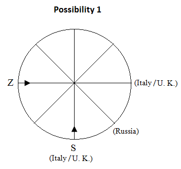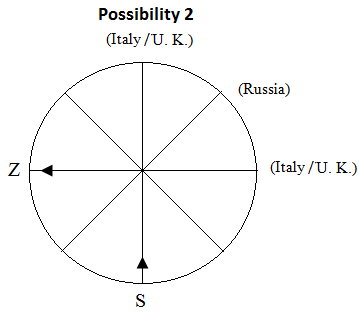 (1) From 'Z is sitting second to the left of S, who is facing inwards. Representative of Russia is sitting third to the right of Z. Immediate neighbours of the representative of Russia are the representatives of Italy and United Kingdom' we get two possibilities: